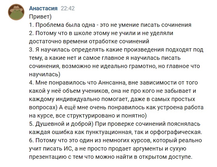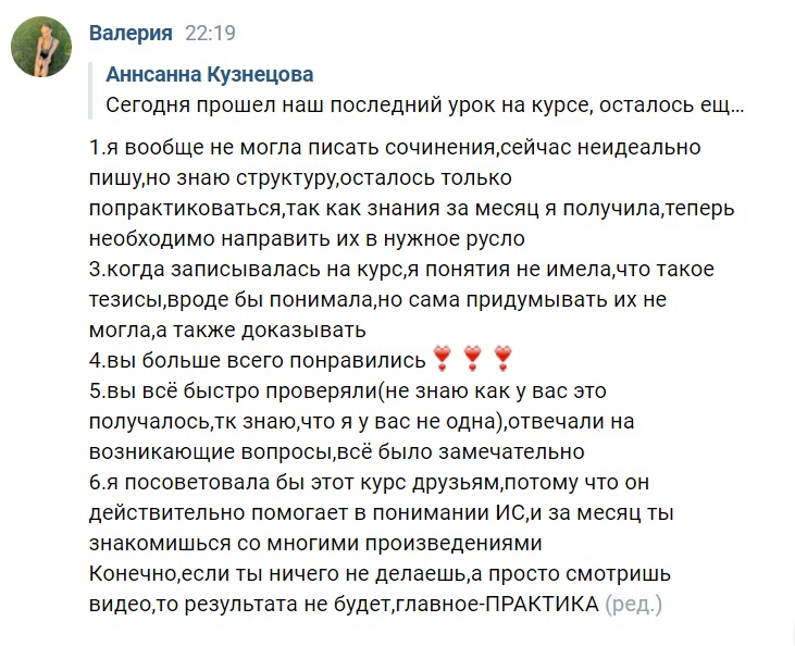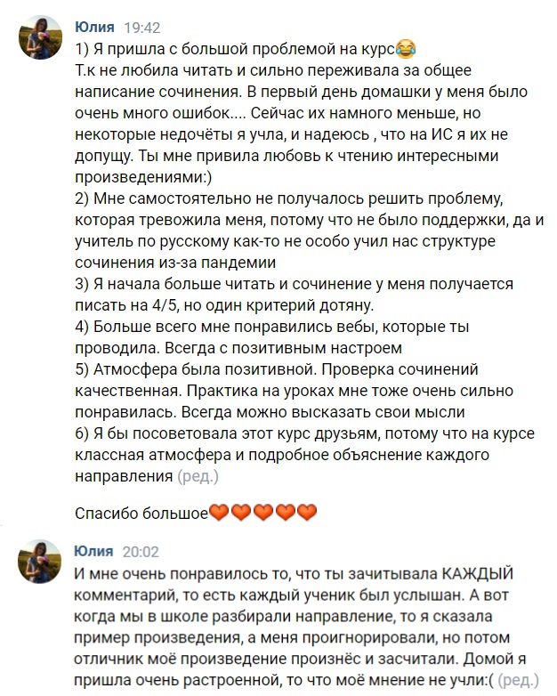 - Разбираем тексты, которые были на ЕГЭ в 2021 и 2020 году, пишем сочинения на уроках вместе, отрабатываем ошибки